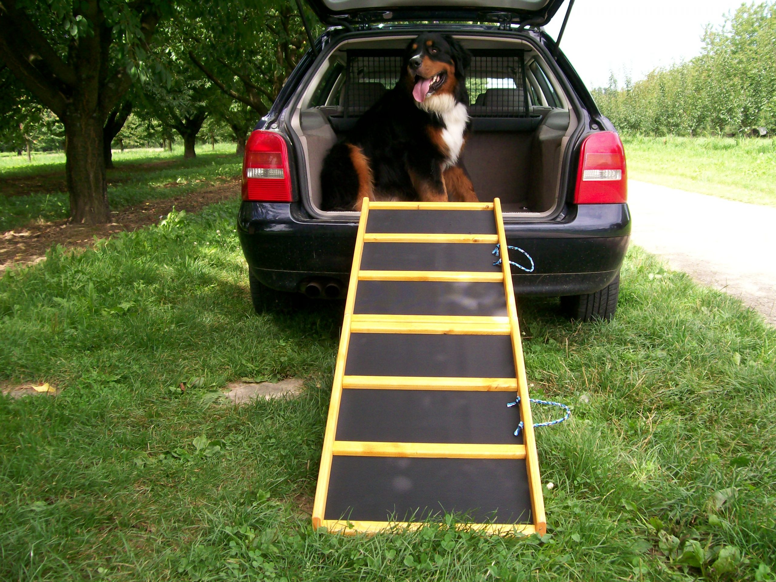 Gerade große, schwere Hunde die schon etwas älter und unsicher sind, Hunde nach Gelenk-OP`s die noch nie über eine Rampe ins Auto eingestiegen sind, akzeptieren diese breite Rampe problemlos.